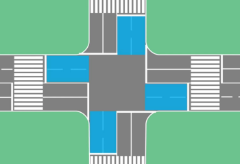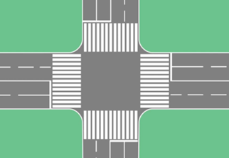 If the crosswalks are located at some distance from the corners of the intersection, in the buffer space created between the crosswalk and the corner of the intersection, both directional markings and Stop or Yield markings can be applied. In this way, no driver will be able to miss the meaning of the obligation to stop or give way.