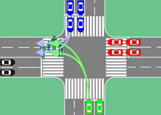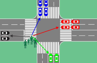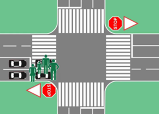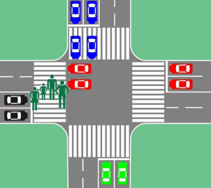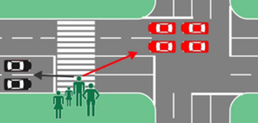 It can often happen that vehicles yielding to pedestrians in the crosswalk or engaged in crossing have to stop in the way of vehicles coming from the side.