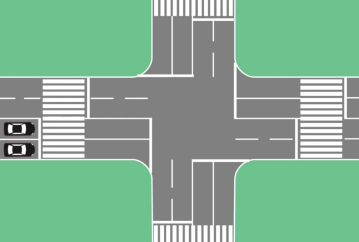 For heavy traffic flows, where buses or other long vehicles frequently travel, the buffer zone between the corner of the intersection and the crosswalk should be at least 10-20 meters, so that this zone can accommodate at least two cars per lane and /or at least a bus.