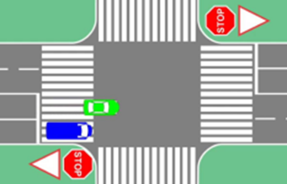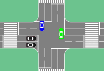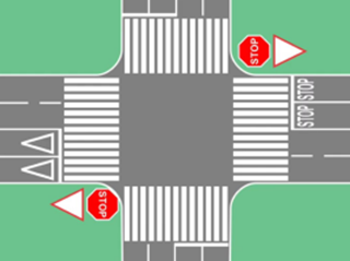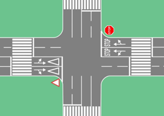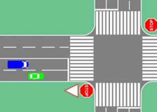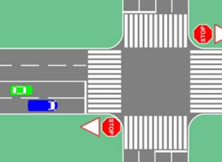 In all other situations, the truck will be in the first lane and the car in the second lane. In this situation, the driver of the car will not be able to see the Stop or Yield sign at the corner of the intersection, due to the fact that he does not have direct visual contact, due to the truck being taller and blocking his visibility.