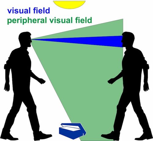 The peripheral visual field decreases in intensity the more the farther away the viewed point is. This is the peripheral visual perception, which any person can notice, even without having studies in this field.