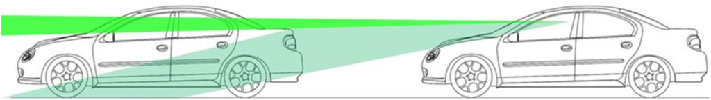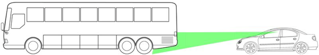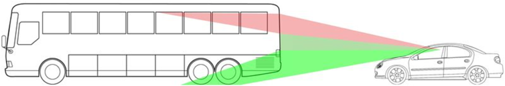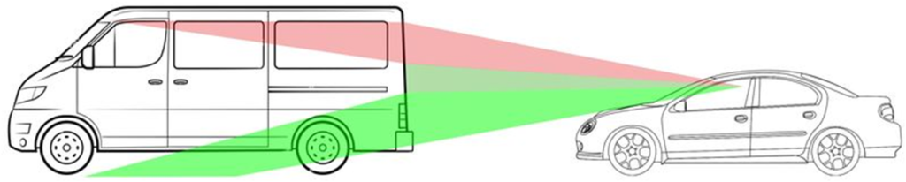 The visual field of the driver driving behind a commercial vehicle will be as low as possible, in order to be able to see the road markings on the asphalt and any possible obstacles (a hole in the asphalt, an object that accidentally ended up on the road, etc.).
