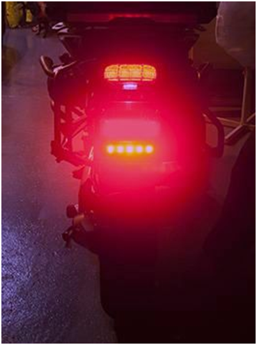 In the case of motorcycles, which have only one brake light, I think the best solution to signal the brake, without any confusion, would be the requirement that the brake lamp for motorcycles be constructed from a horizontal light bar, with the minimum length of the registration plate, located in a different lamp than the lamp for the tail light.