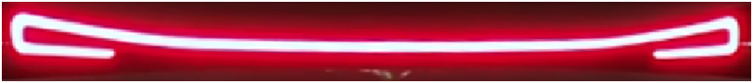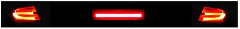 3 red lights of higher intensity (2 lights at the extremities and a central horizontal light in the visual field) for the brake.