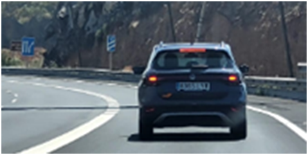 As can be seen, the lights of this braking vehicle can barely be seen due to the too small lighting surfaces. If the image had the sun behind it, or in the driver’s field of vision, the brake lights would not have been noticed.